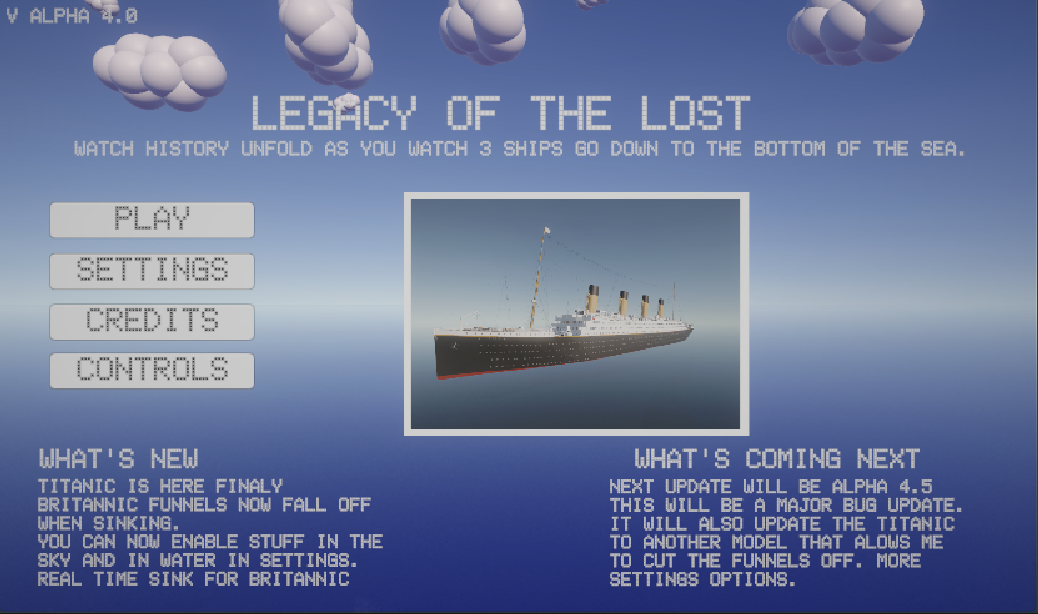 This update includes the Titanic night to remember sink. The sink animation is not finished; it is just a demo version.